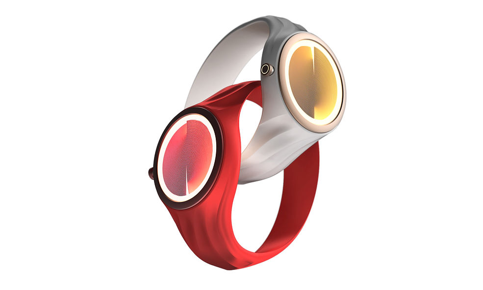 A dial that merges classical aesthetics with modern design, made from luxurious and unusual materials such as marble textures, polished brass, or crystal clear glass.